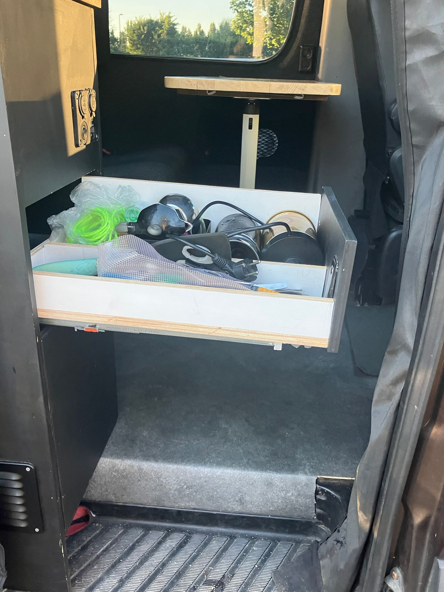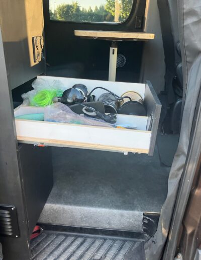 De camperinrichting is volledig uitneembaar, dus ook inzetbaar als gewone auto